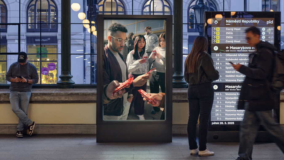 - KitKat intervino espacios de OOH mostrando personas sosteniendo barras de KitKat como si fueran celulares, reemplazando visualmente el dispositivo y reforzando el mensaje de desconexión digital.